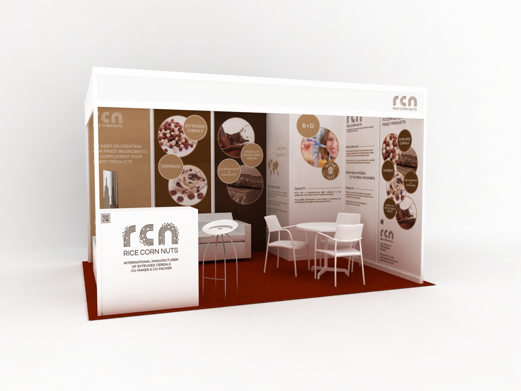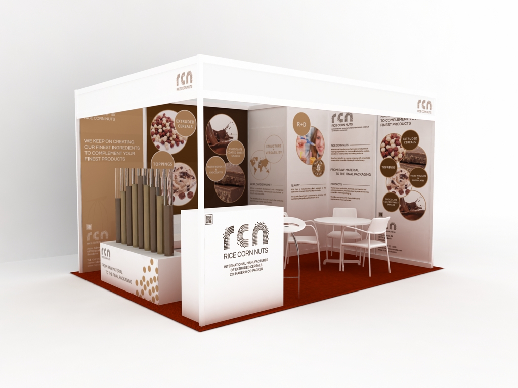 RCN – Fi Europe Project type: Exhibition Stand – Graphic – 3D Client: Rice Corn Nuts S.L. Project URL: www.ricecornuts.com Exhibition Stand for the Food Ingredients Europe 2015 Trade Fair Paris.